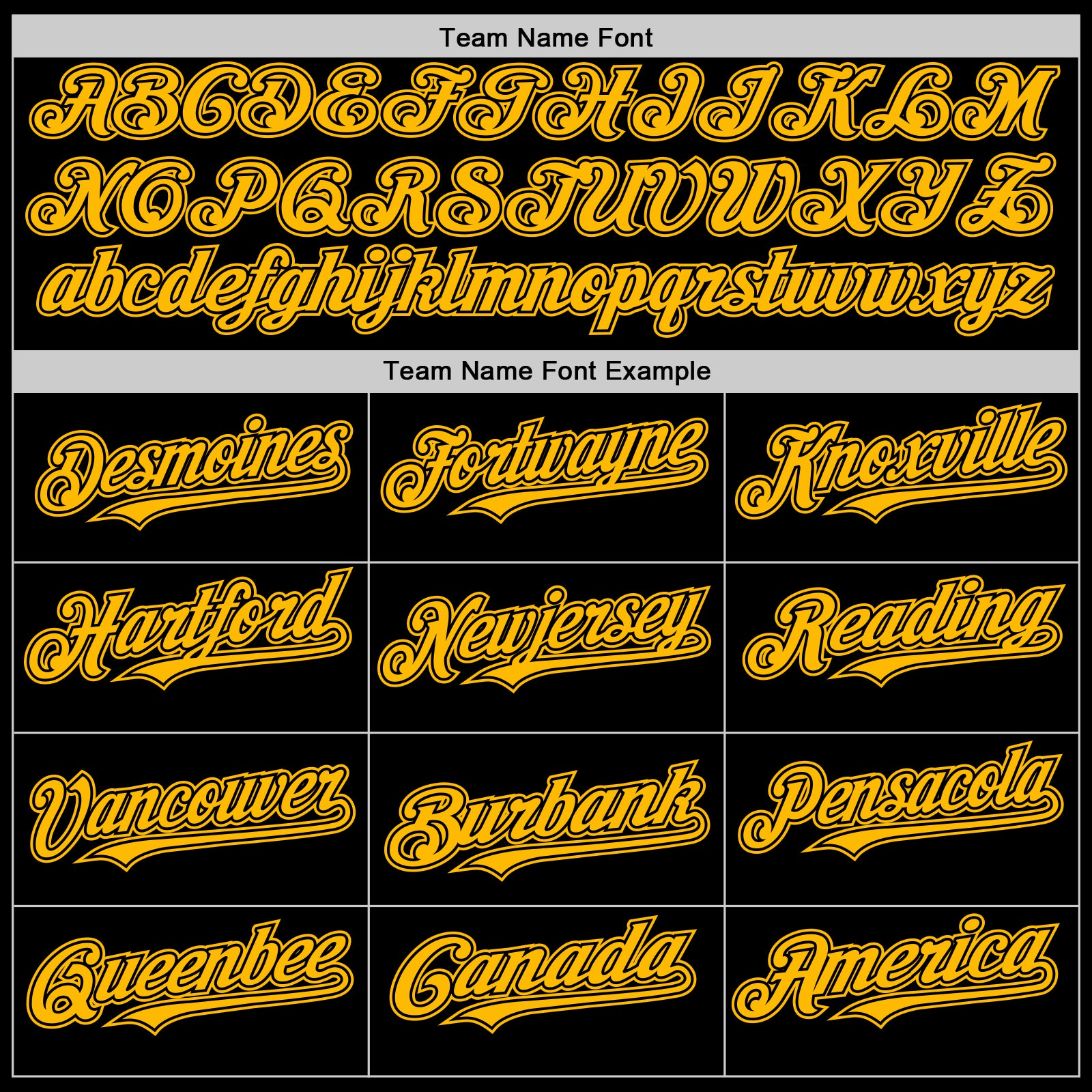 • Load image into Gallery viewer, Custom Black Gold Bomber Full-Snap Varsity Letterman Lapel Collar Byron Jacket