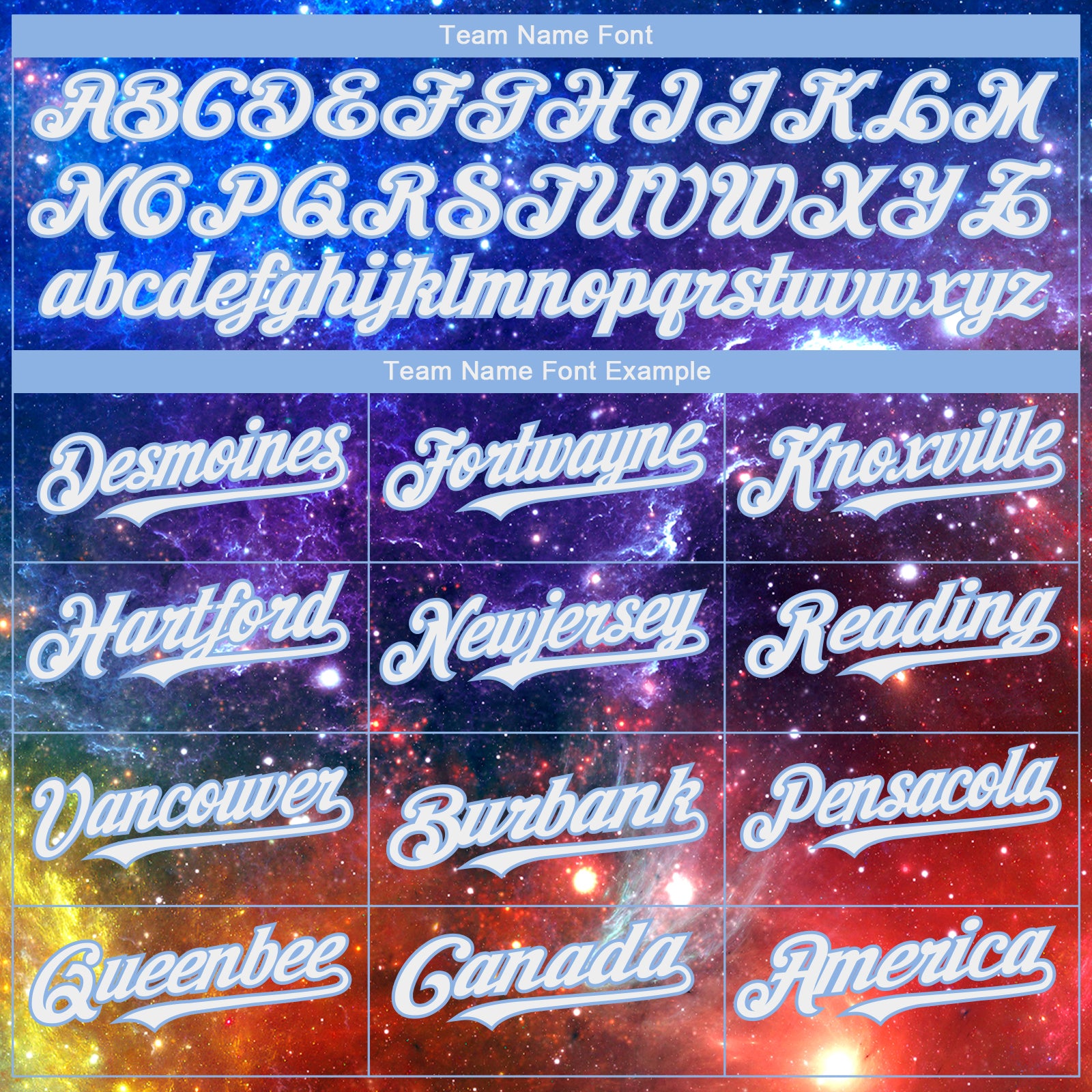 Custom Galactic White-Light Blue 3D Bomber Full-Snap Varsity Letterman Hoodie Jacket