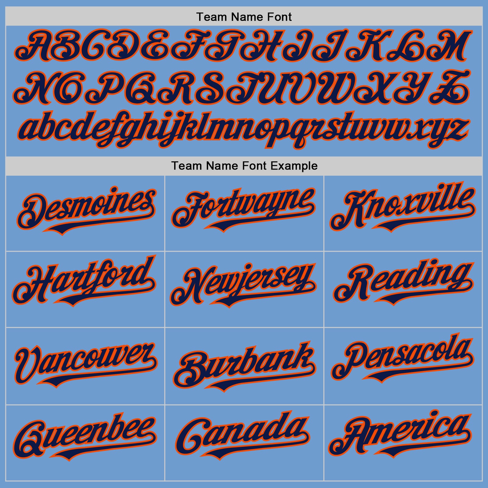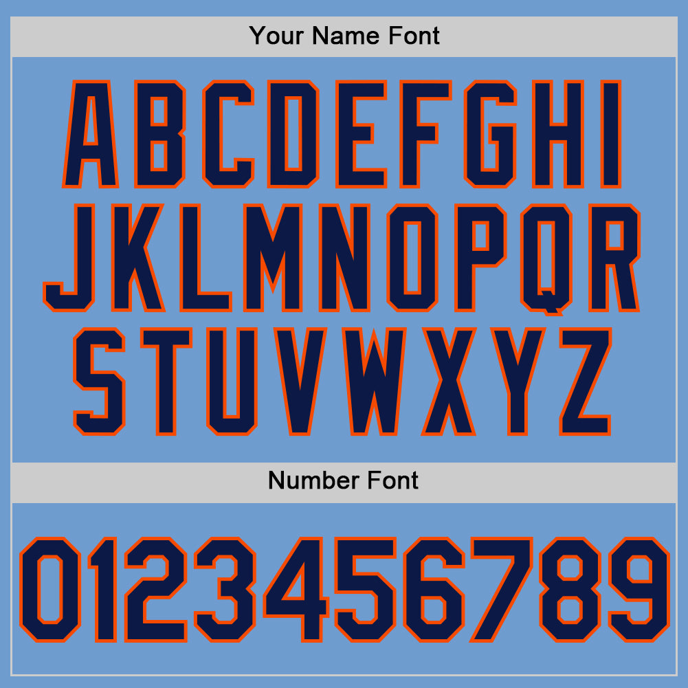 Custom Light Blue Navy-Orange Bomber Full-Snap Varsity Letterman Hoodie Jacket