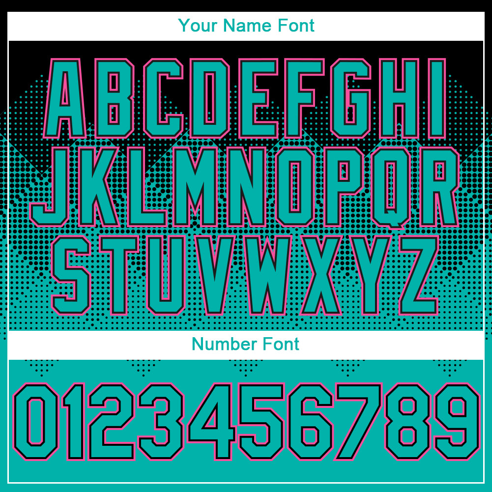 Custom Black Aqua-Pink Gradient Square Shape 3D Pattern Design Bomber Full-Snap Varsity Letterman Hoodie Jacket
