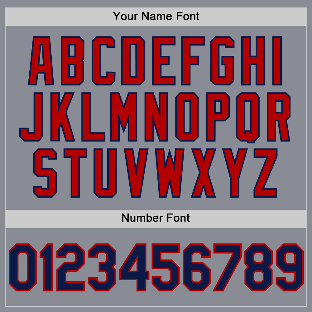 Custom Gray Navy-Red Bomber Full-Snap Varsity Letterman Hoodie Jacket