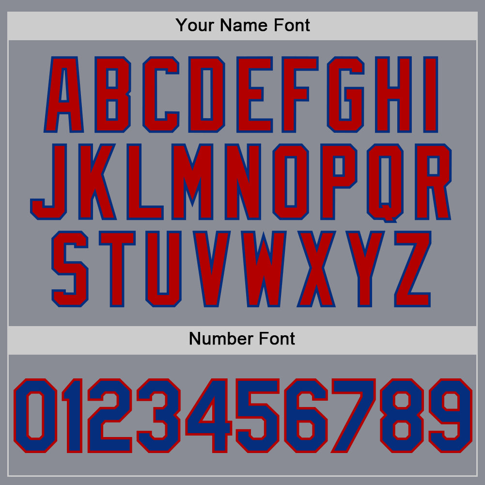 Custom Gray Royal-Red Bomber Full-Snap Varsity Letterman Two Tone Hoodie Jacket