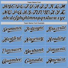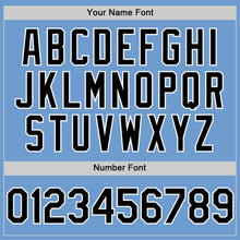 • Load image into Gallery viewer, Custom Light Blue Black-White Bomber Full-Snap Varsity Letterman Hoodie Jacket