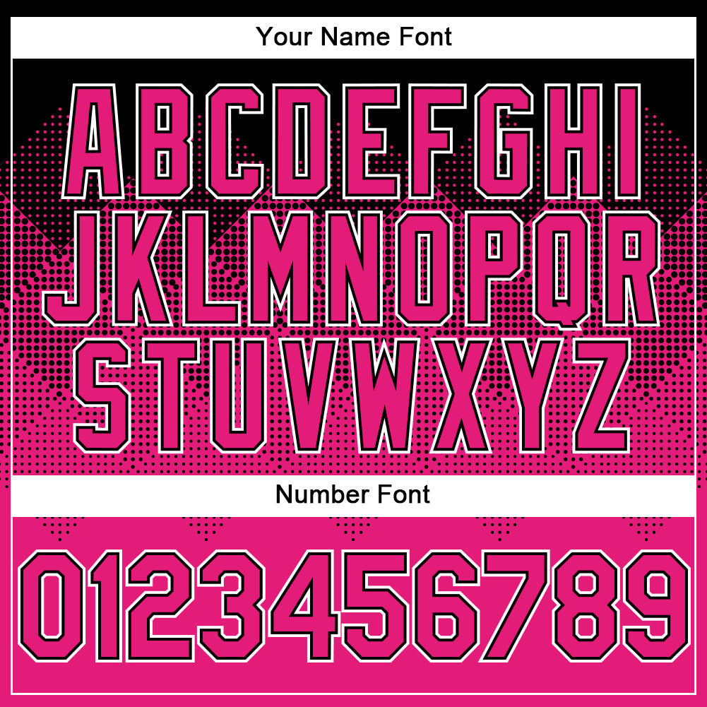 Custom Black Hot Pink-White Gradient Square Shape 3D Pattern Design Bomber Full-Snap Varsity Letterman Hoodie Jacket