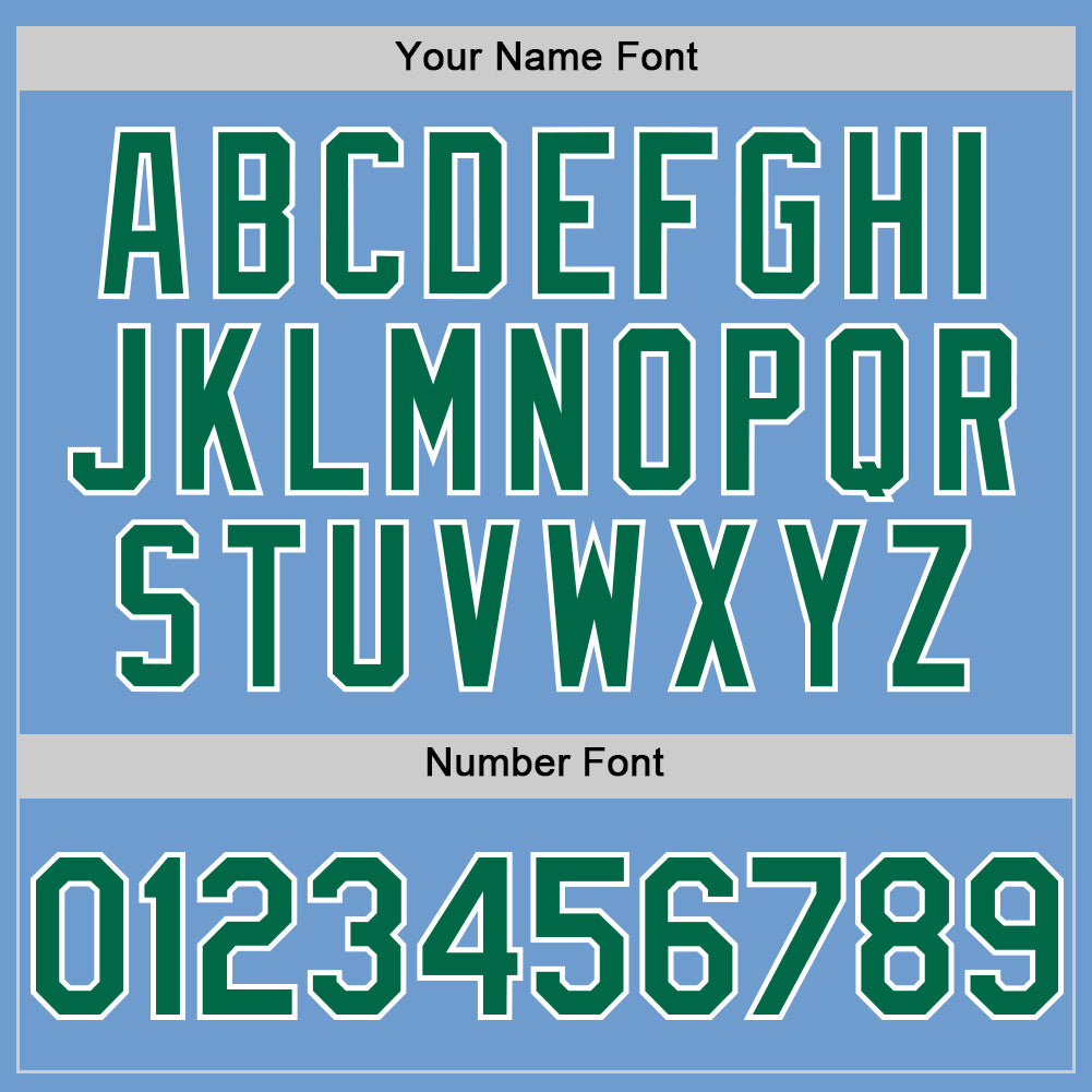 Custom Light Blue Kelly Green-White Bomber Full-Snap Varsity Letterman Hoodie Jacket