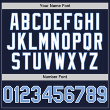 • Load image into Gallery viewer, Custom Navy Light Blue-White Bomber Full-Snap Varsity Letterman Two Tone Hoodie Jacket