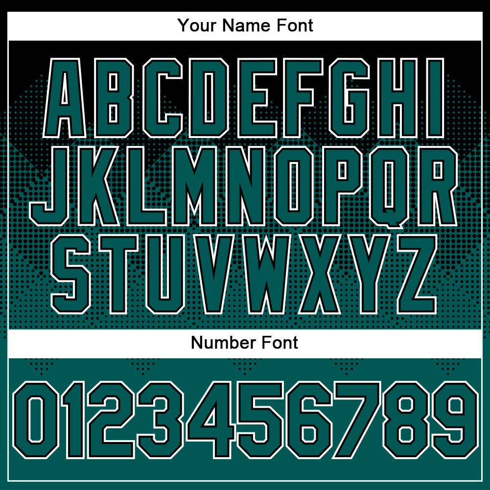 Custom Black Midnight Green-White Gradient Square Shape 3D Pattern Design Bomber Full-Snap Varsity Letterman Hoodie Jacket