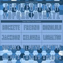 • Load image into Gallery viewer, Custom Light Blue Black Geometric Shapes Sublimation Soccer Uniform Jersey