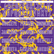• Load image into Gallery viewer, Custom Purple Gold-White Abstract Fluid Sublimation Soccer Uniform Jersey