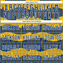 • Load image into Gallery viewer, Custom Royal Gold-White Pinstripe Sublimation Soccer Uniform Jersey