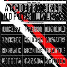• Load image into Gallery viewer, Custom Black Red-White Diagonal Lines Sublimation Soccer Uniform Jersey