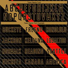 • Load image into Gallery viewer, Custom Black Red-Old Gold Diagonal Lines Sublimation Soccer Uniform Jersey