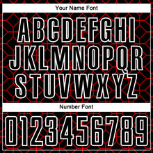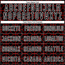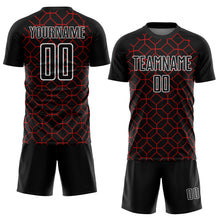 • Load image into Gallery viewer, Custom Black Red-White Geometric Shapes Sublimation Soccer Uniform Jersey