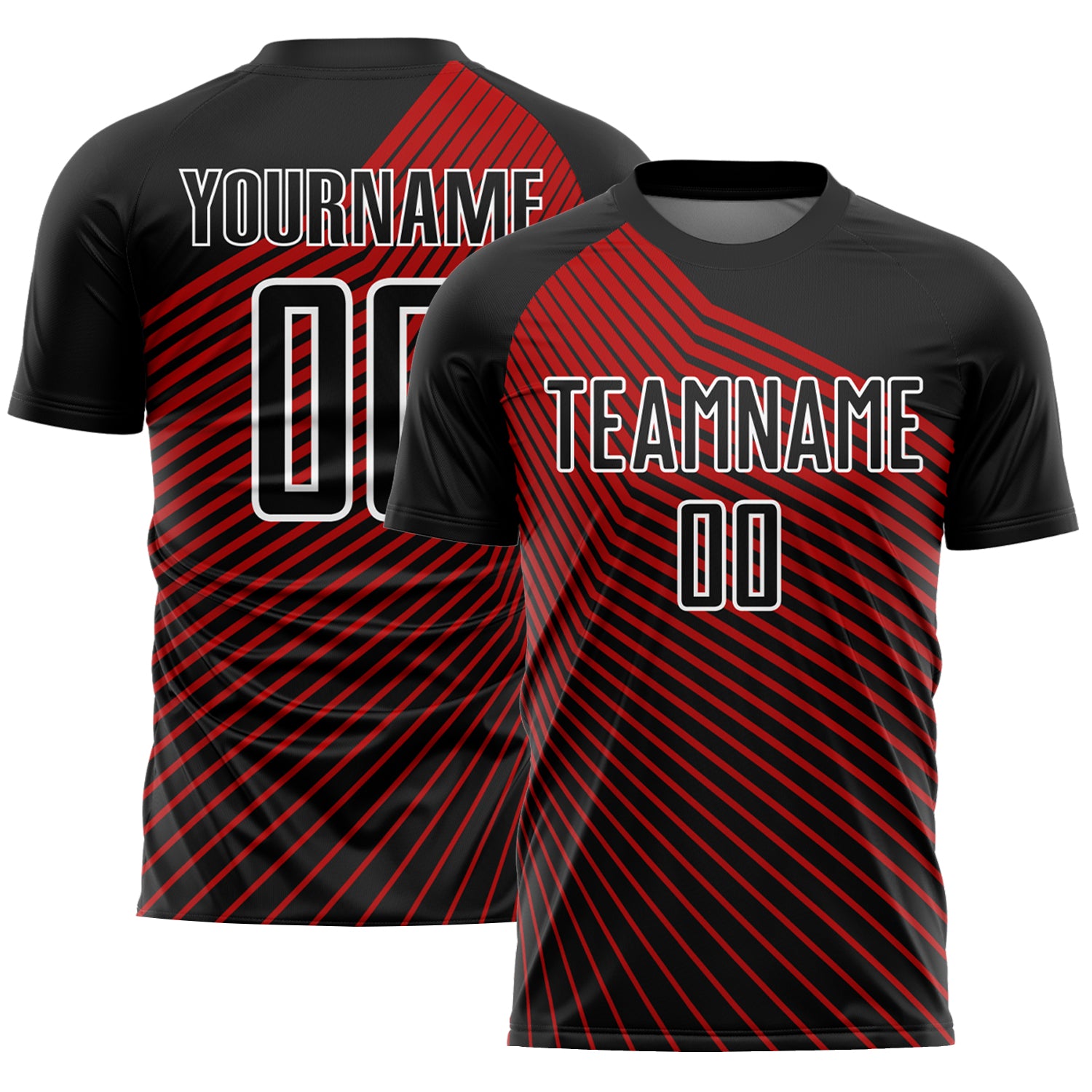 Custom Black Red-White Lines Sublimation Soccer Uniform Jersey