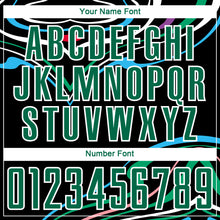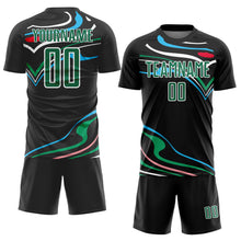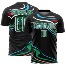 • Load image into Gallery viewer, Custom Black Kelly Green-White Fluid Shapes Sublimation Soccer Uniform Jersey