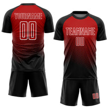 • Load image into Gallery viewer, Custom Black Red-White Lines Sublimation Soccer Uniform Jersey