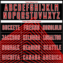 • Load image into Gallery viewer, Custom Black Red-White Lines Sublimation Soccer Uniform Jersey