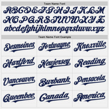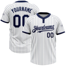 • Load image into Gallery viewer, Custom White Navy Pinstripe Gray Two-Button Unisex Softball Jersey