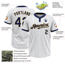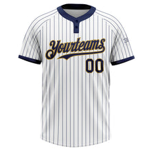 • Load image into Gallery viewer, Custom White Navy Pinstripe Old Gold Two-Button Unisex Softball Jersey