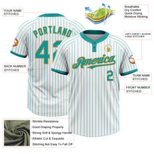 • Load image into Gallery viewer, Custom White Teal Pinstripe Old Gold Two-Button Unisex Softball Jersey