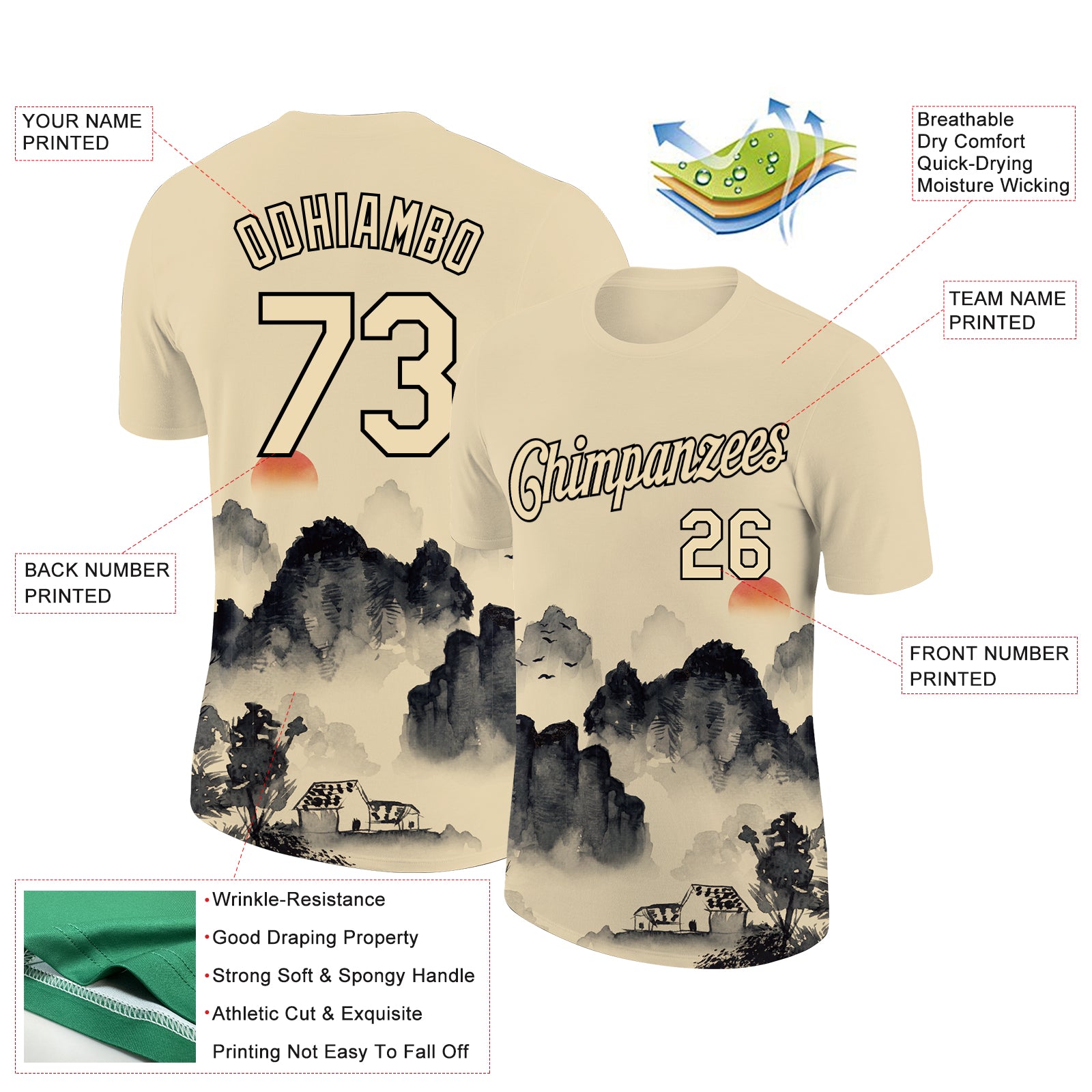 Custom City Cream Black 3D Pattern Design Mountain Performance T-Shirt