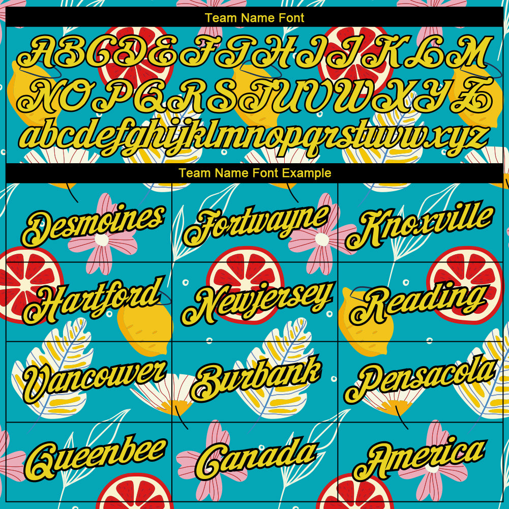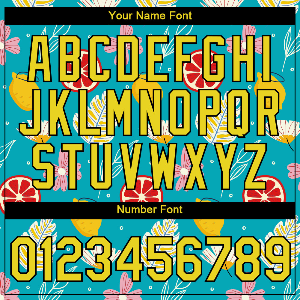 Custom Sky Blue Neon Yellow-Black 3D Pattern Design Summer Holiday Flower And Fruit Performance T-Shirt