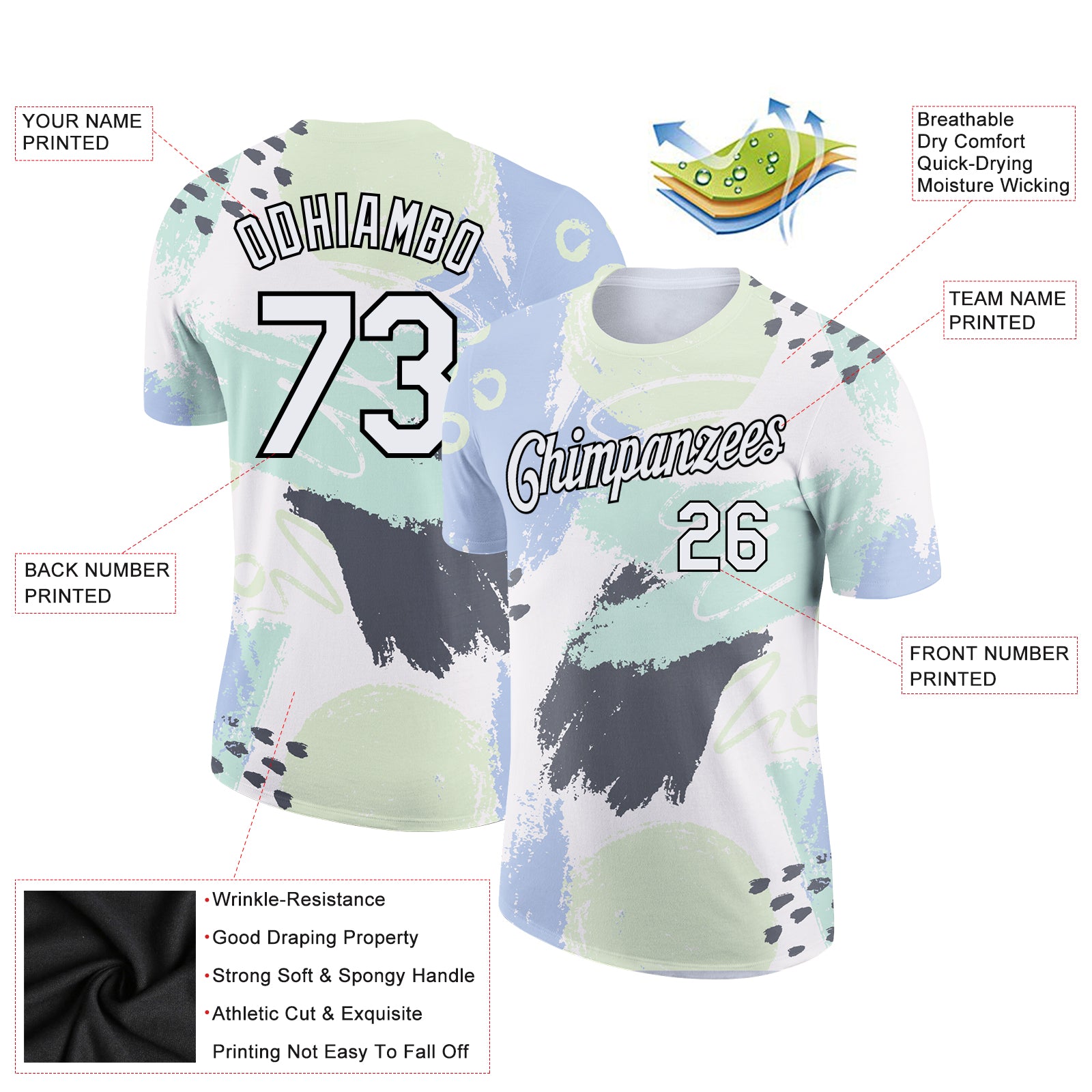 Custom White Black 3D Pattern Design Abstract Doodle Performance T-Shirt
