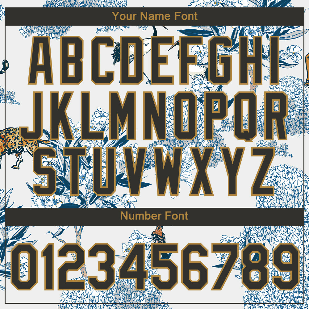 Custom White Black-Old Gold 3D Pattern Design Plant And Animal Performance T-Shirt