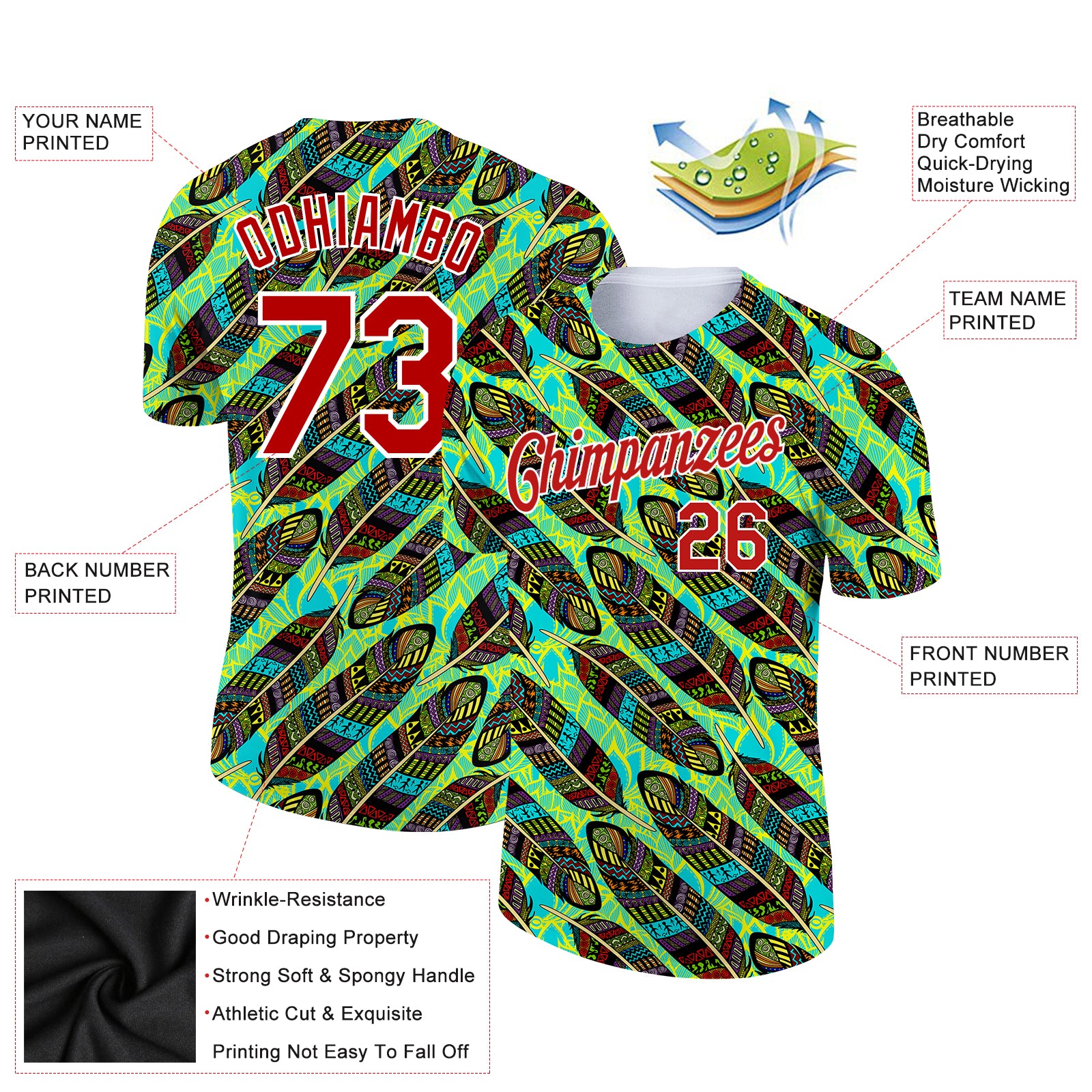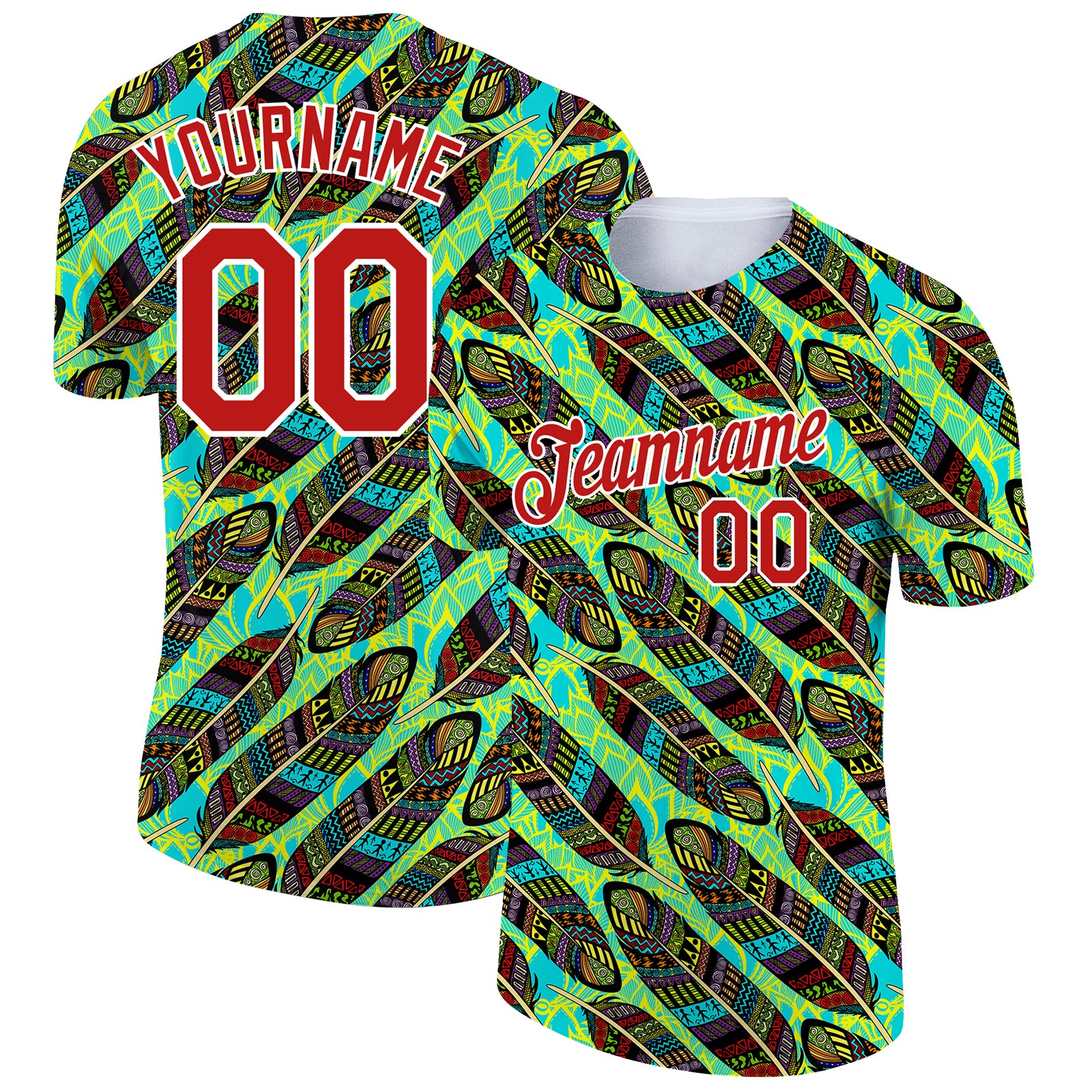 Custom White Red 3D Pattern Design Feather Performance T-Shirt