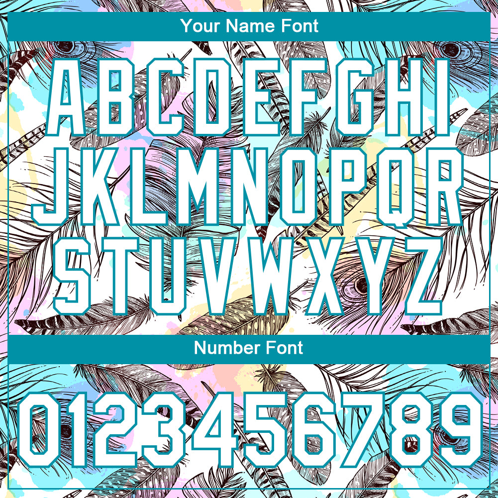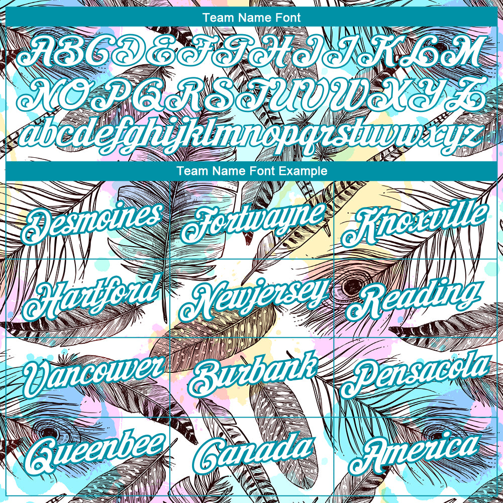 Custom White Teal 3D Pattern Design Feathers Performance T-Shirt