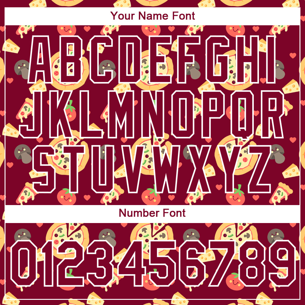 Custom Maroon White 3D Pattern Design Food Pizza Performance T-Shirt