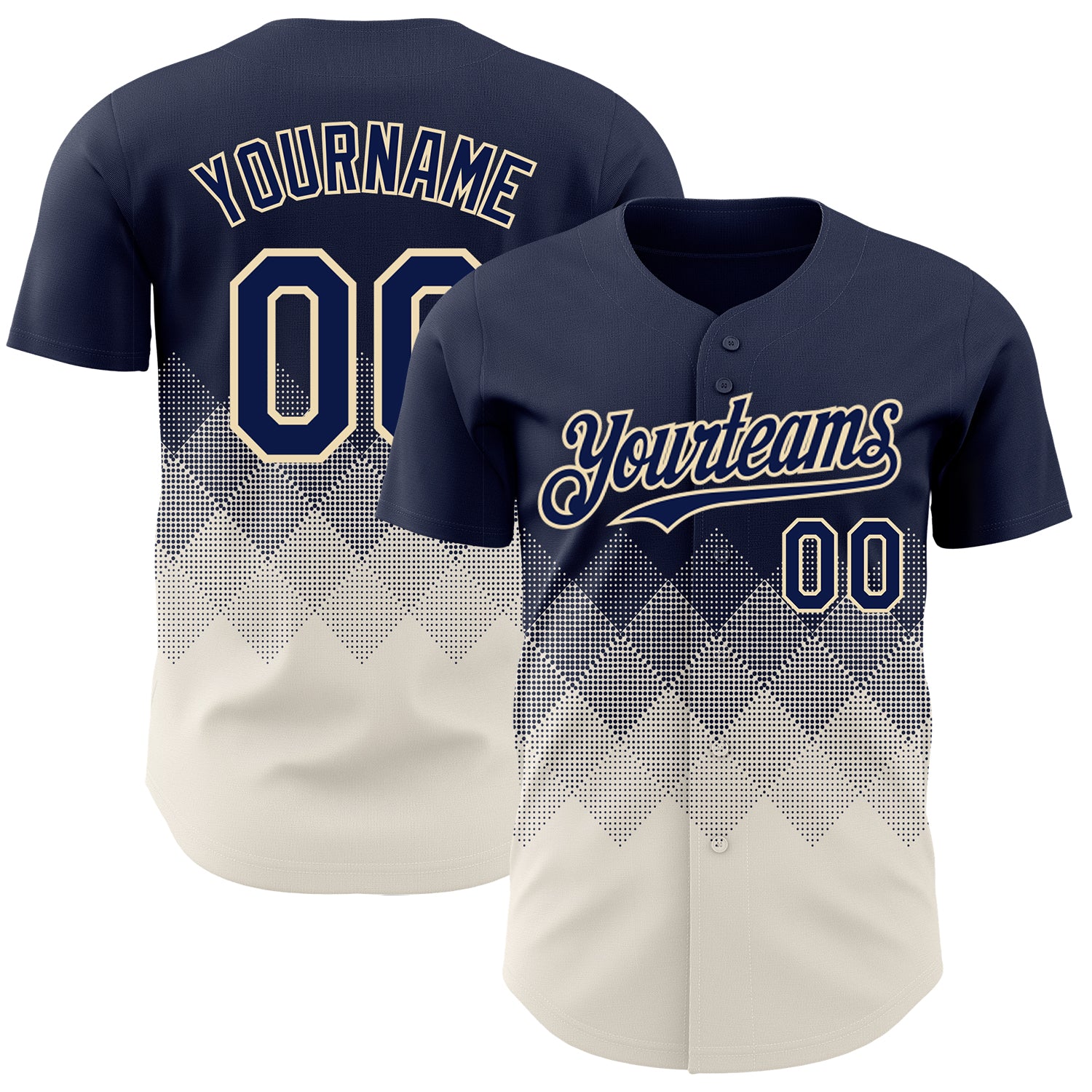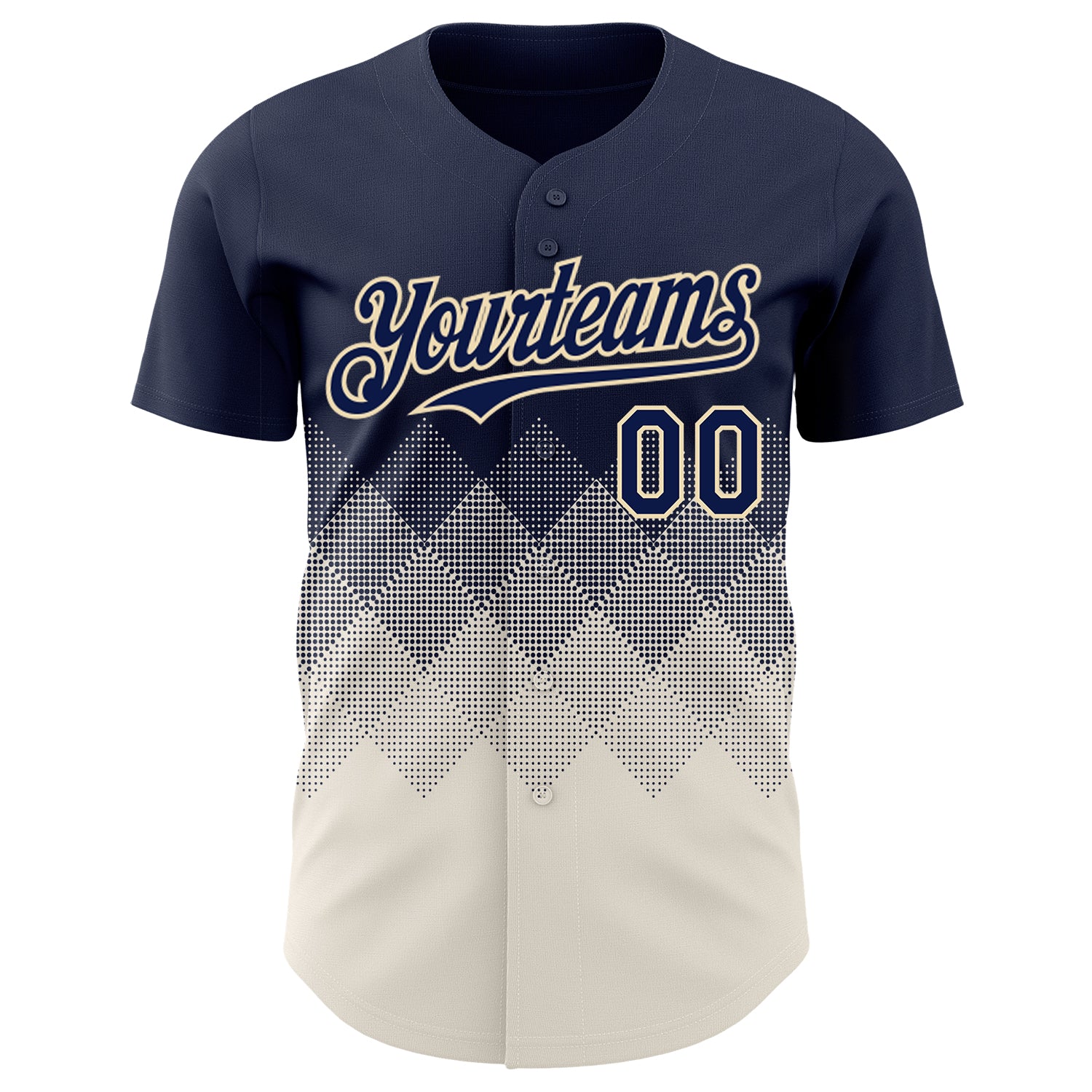Custom Navy Cream 3D Gradient Square Shape Authentic Baseball Jersey