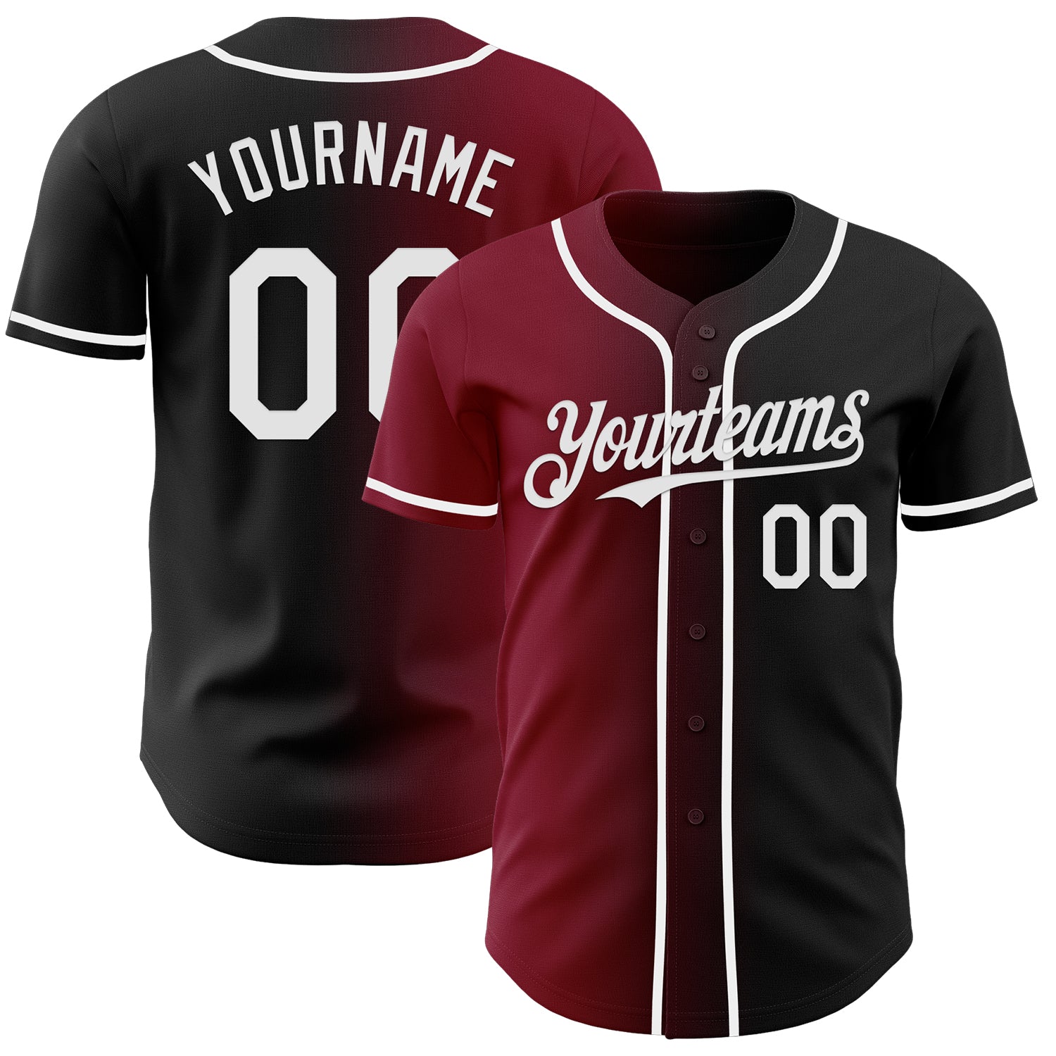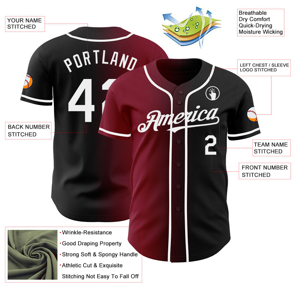 Custom Black White-Crimson Authentic Gradient Fashion Baseball Jersey