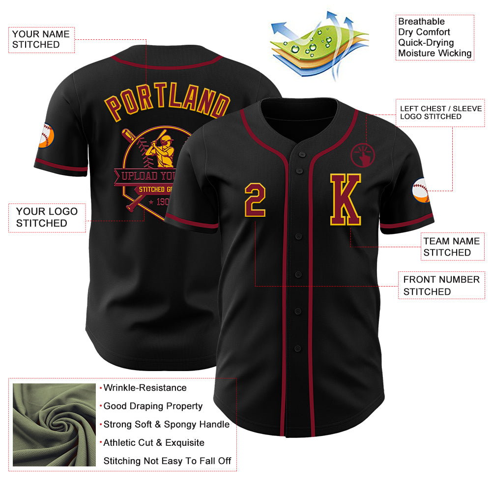 Custom Black Crimson-Gold Authentic Baseball Jersey