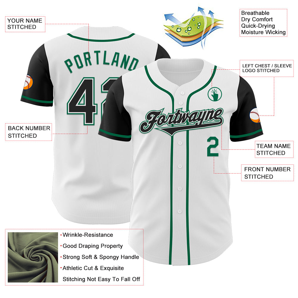 Custom White Black-Kelly Green Authentic Two Tone Baseball Jersey