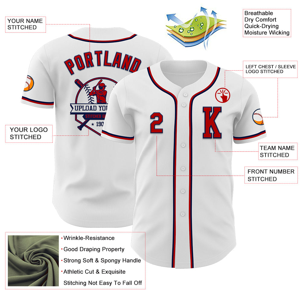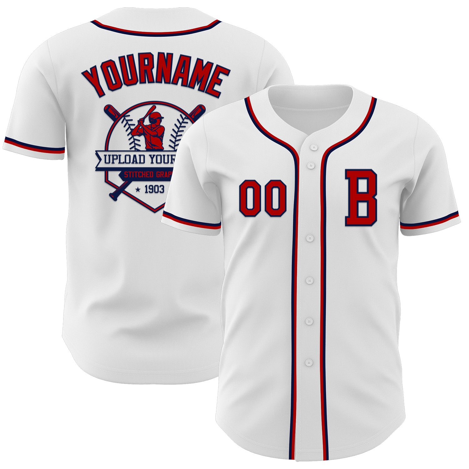 • Load image into Gallery viewer, Custom White Red-Navy Authentic Baseball Jersey