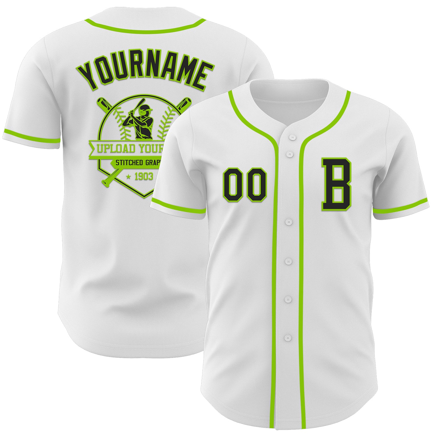 Custom White Black-Neon Green Authentic Baseball Jersey