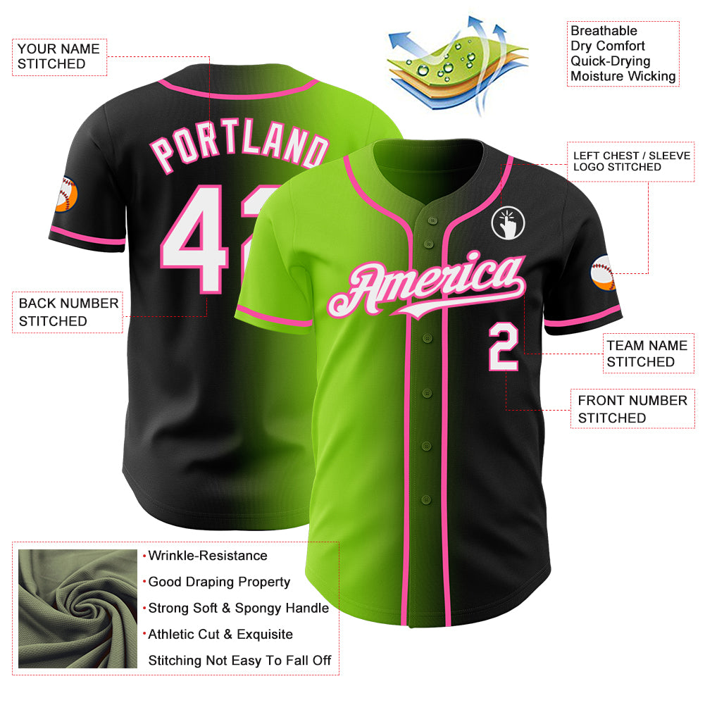 Custom Black White Neon Green-Pink Authentic Gradient Fashion Baseball Jersey