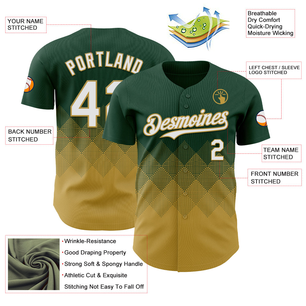 Custom Green White-Old Gold 3D Gradient Square Shape Authentic Baseball Jersey