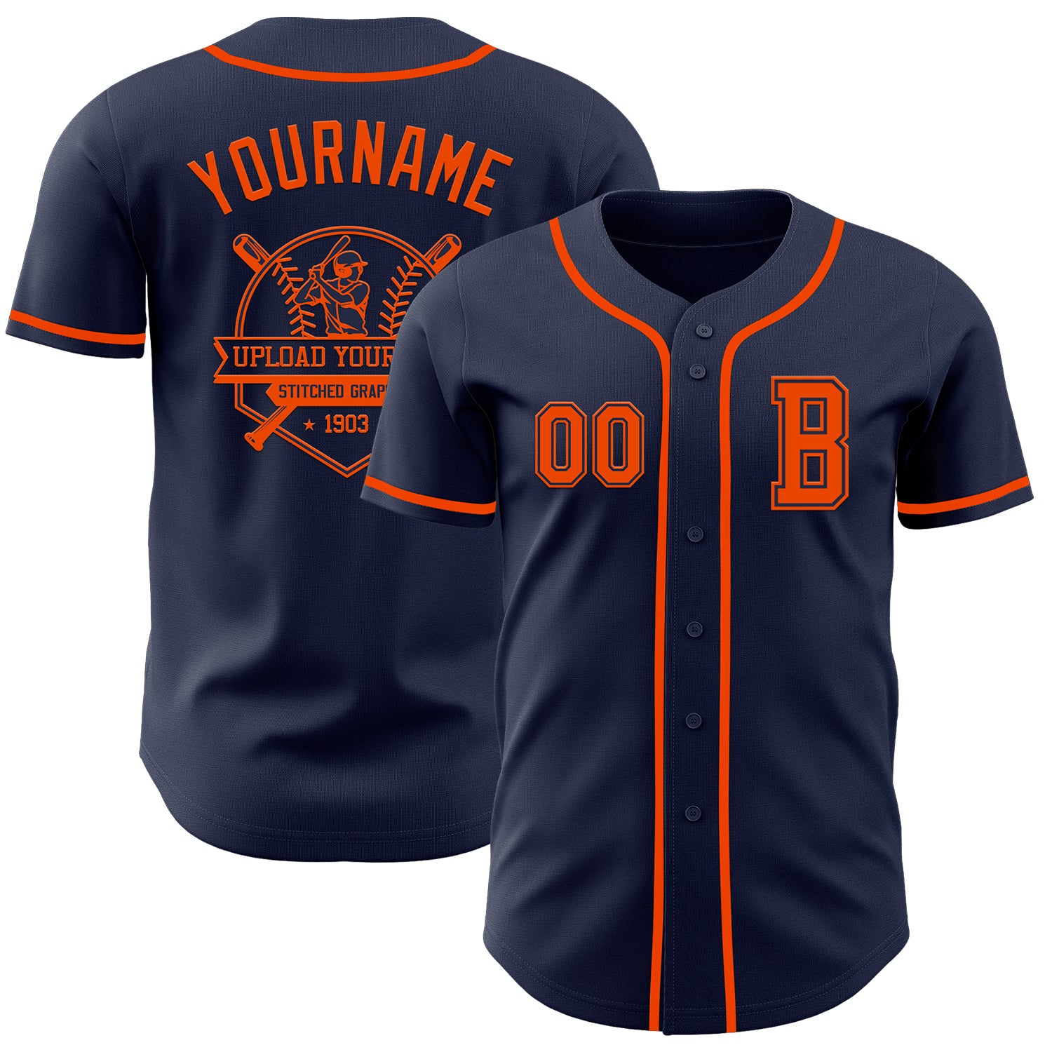 Custom Navy Orange Authentic Baseball Jersey