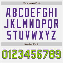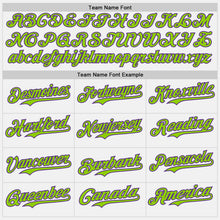 • Load image into Gallery viewer, Custom White Neon Green Pinstripe Purple Authentic Two Tone Baseball Jersey