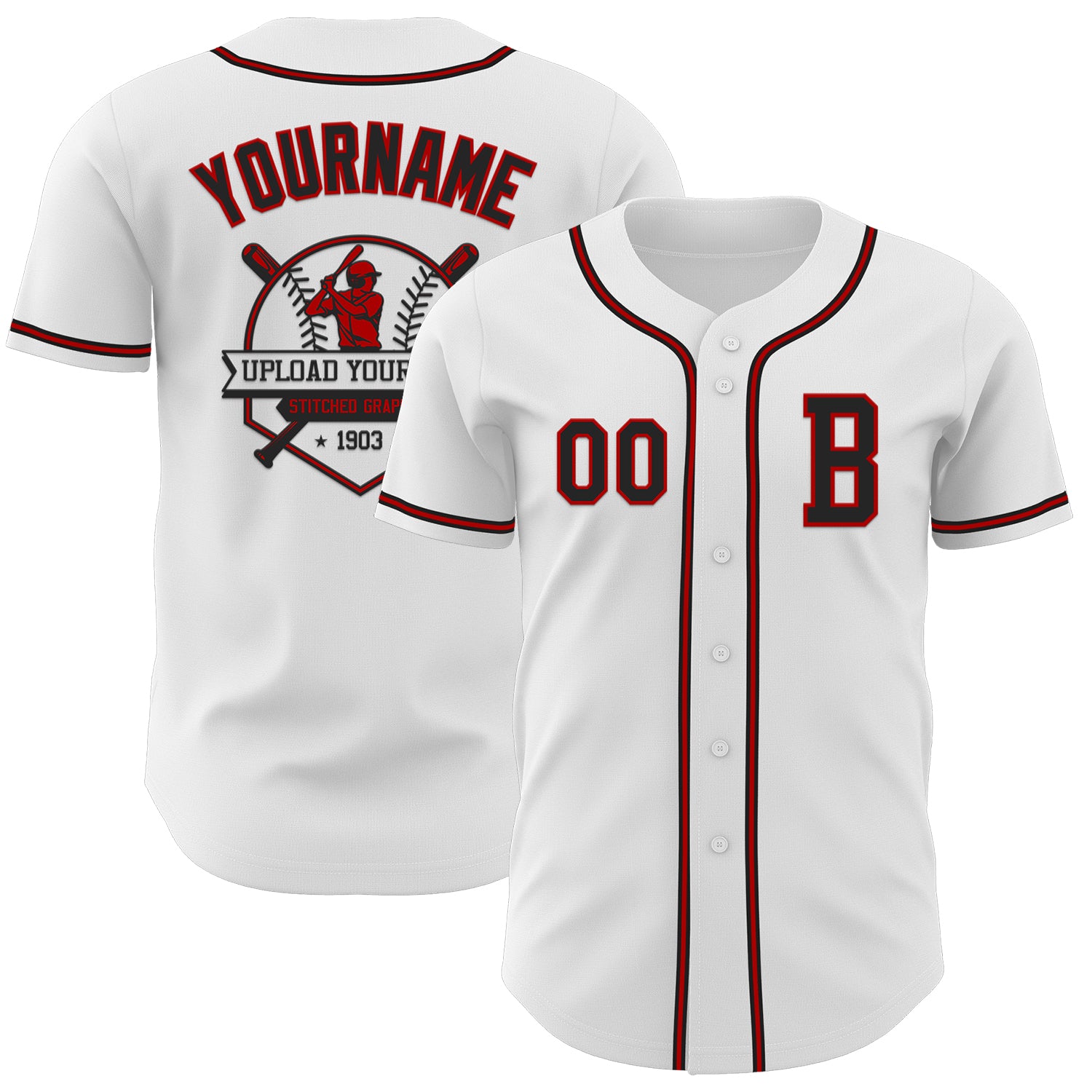 • Load image into Gallery viewer, Custom White Black-Red Authentic Baseball Jersey