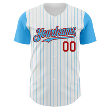 • Load image into Gallery viewer, Custom White Sky Blue Pinstripe Red Authentic Two Tone Baseball Jersey