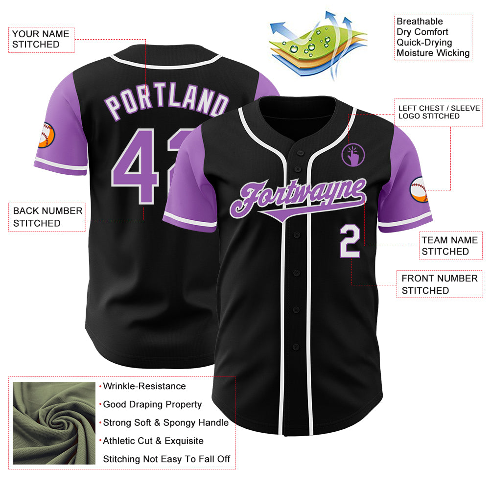 Custom Black Medium Purple-White Authentic Two Tone Baseball Jersey