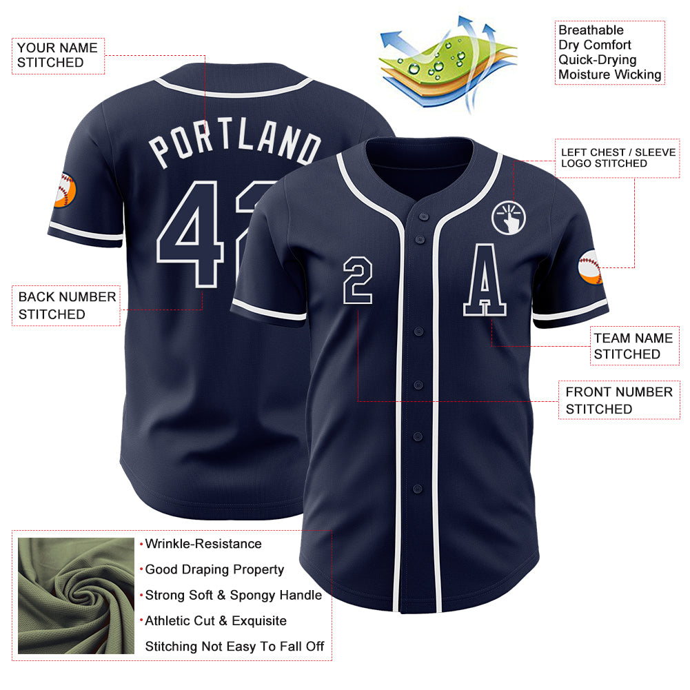 • Load image into Gallery viewer, Custom Navy White Authentic Baseball Jersey