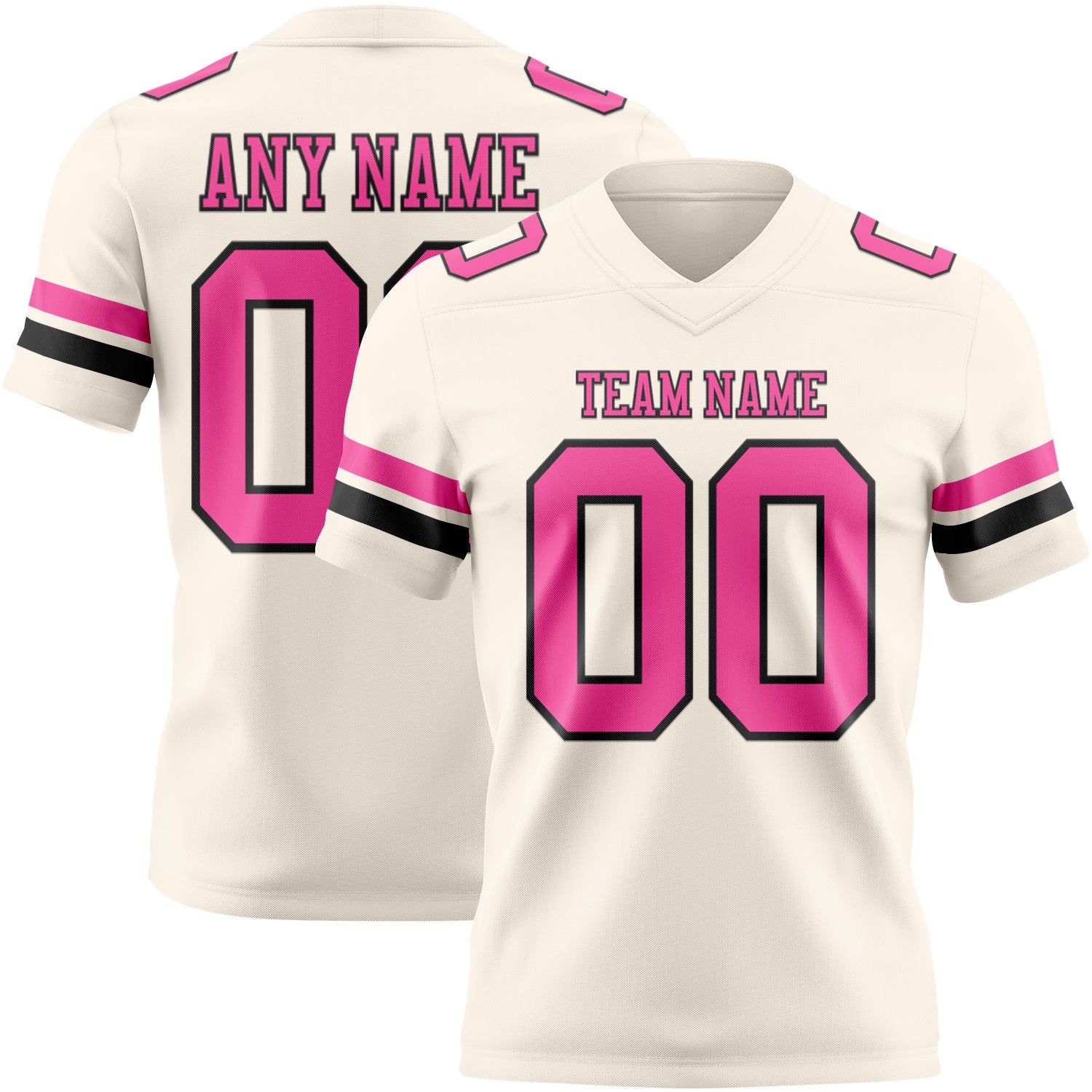 • Load image into Gallery viewer, Custom Cream Pink-Black Authentic Football Jersey