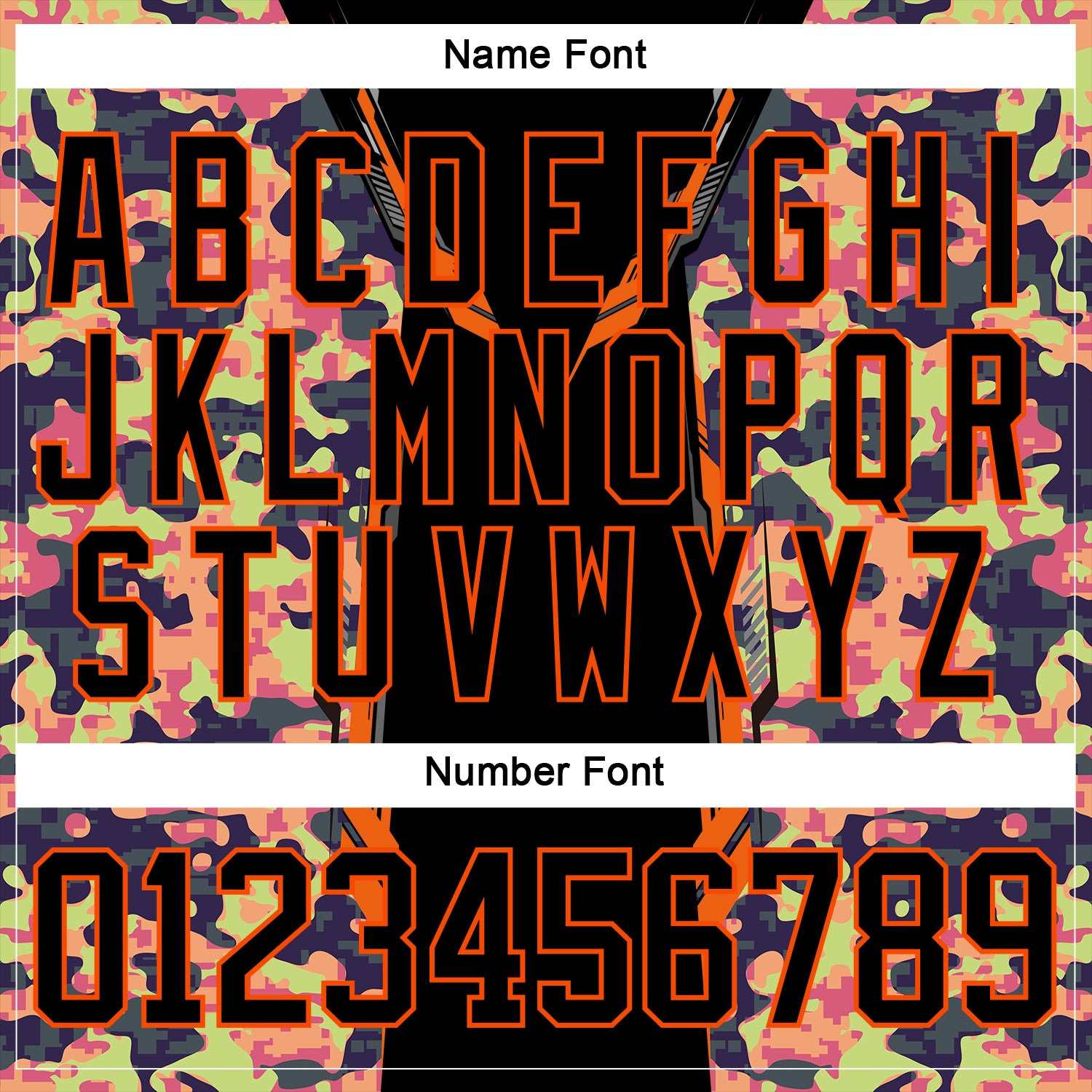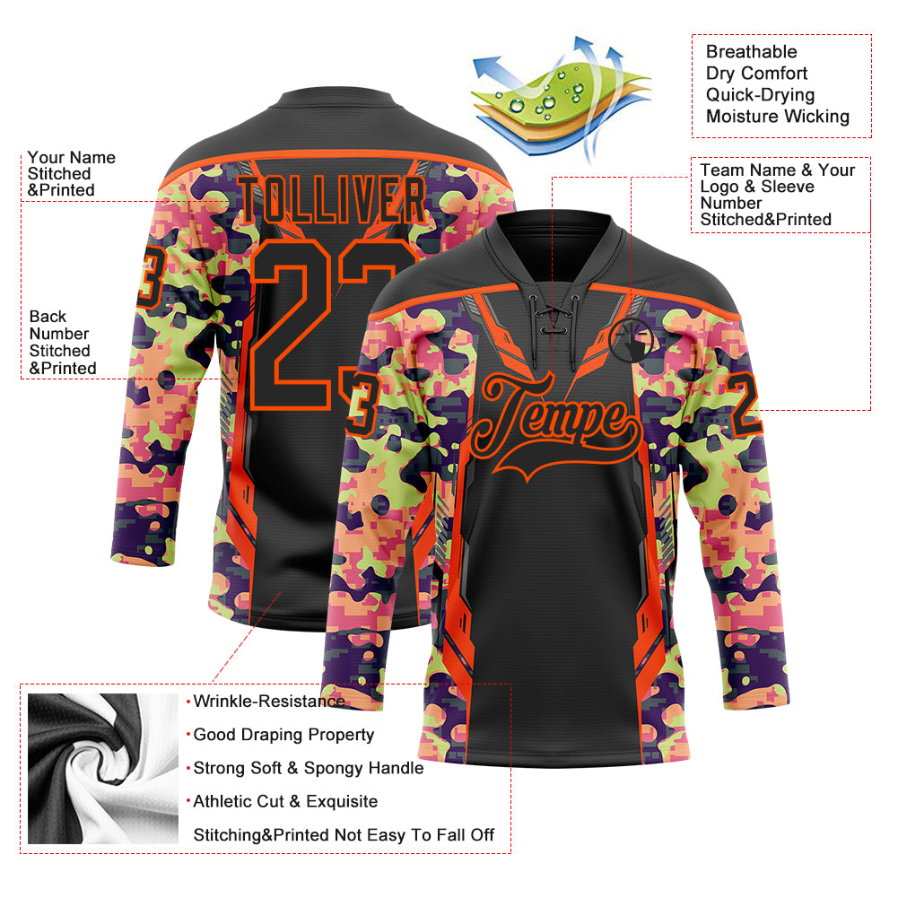 Custom Camo Black-Orange 3D Camouflage Pixel Hockey Lace Neck Jersey