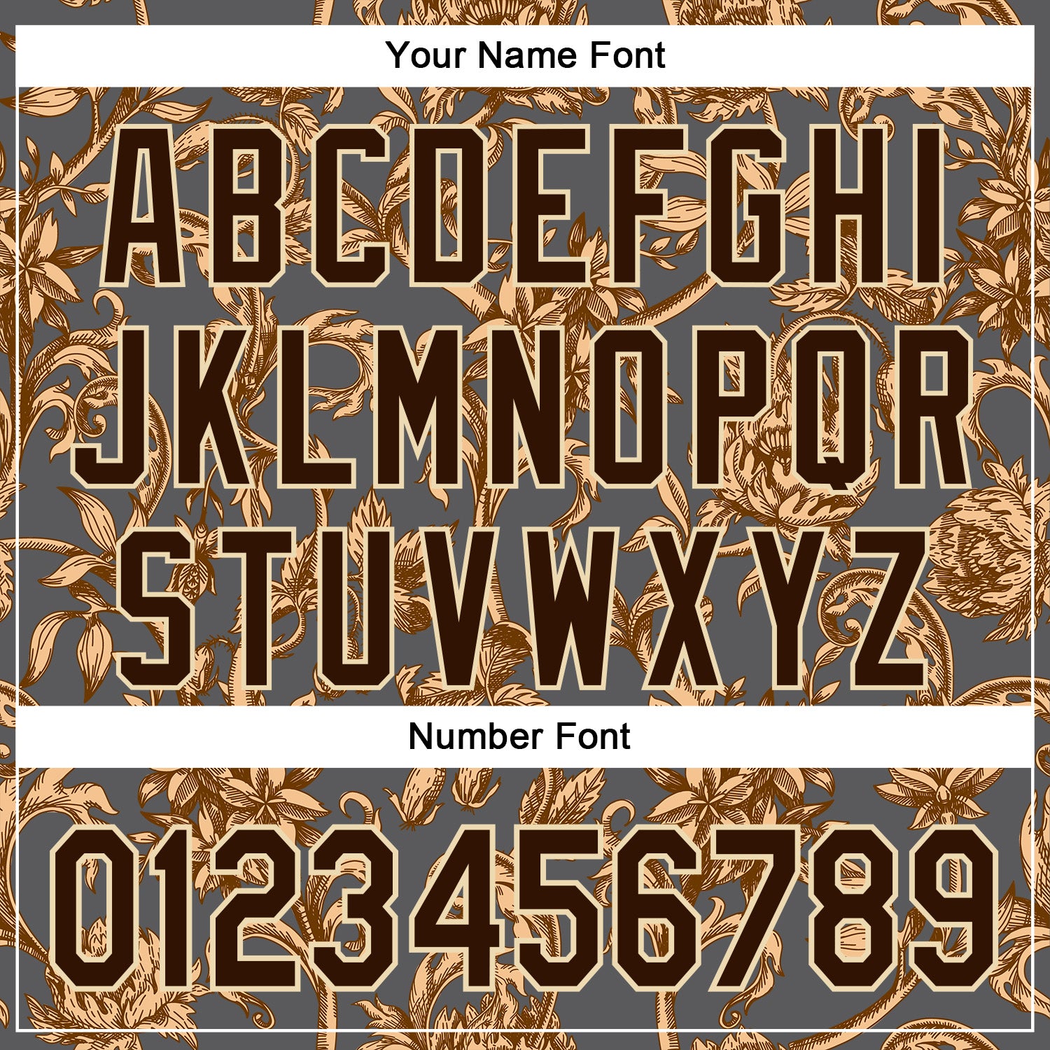 Custom Stitched Steel Gray Brown-Cream 3D Pattern Design Golden Subtle Floral Sports Pullover Sweatshirt Hoodie