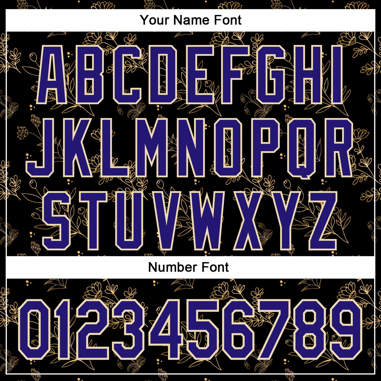 Custom Stitched Black Dark Purple-Cream 3D Pattern Design Golden Subtle Floral Sports Pullover Sweatshirt Hoodie