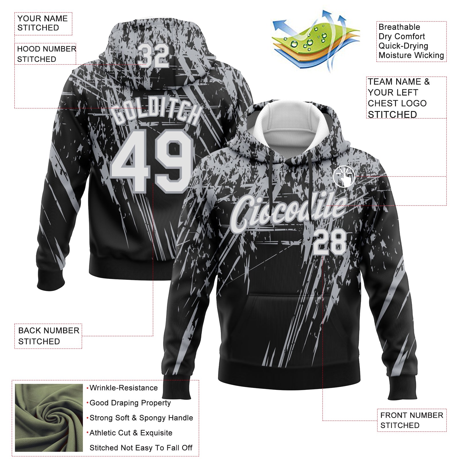 Custom Stitched Black White-Gray 3D Pattern Design Splash Grunge Art Sports Pullover Sweatshirt Hoodie